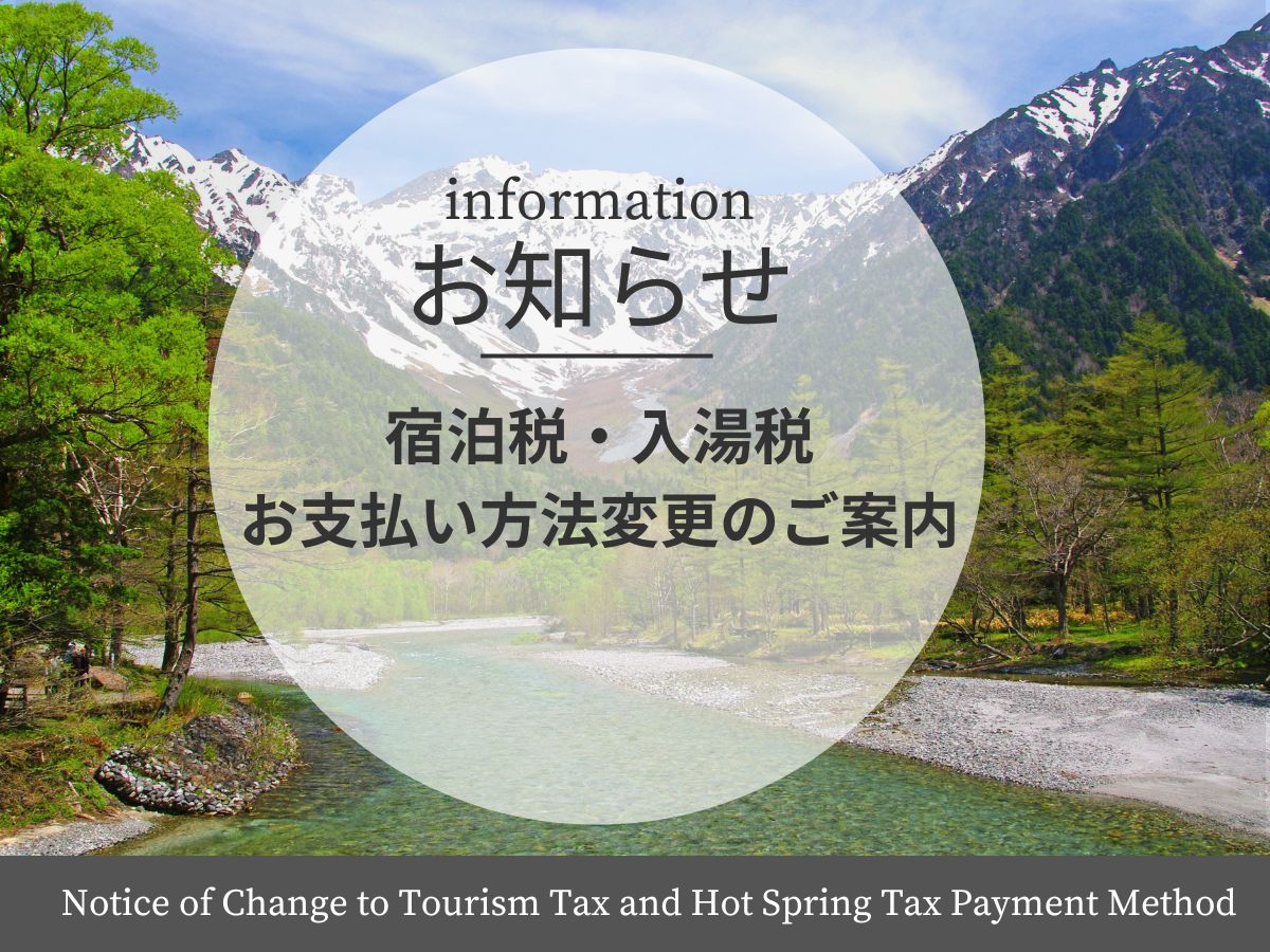 入湯税および宿泊税の取り扱いにつきまして、ご予約いただいた日付により、以下の通り変更となります。