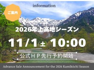 ご注意 ※当館は上高地公園内ではなくマイカー規制最終地の沢渡温泉にございます。